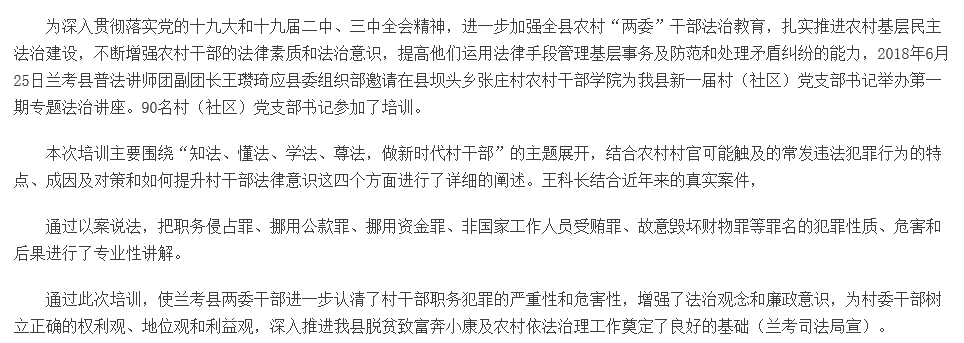 兰考县举办村支部书记法治培训班